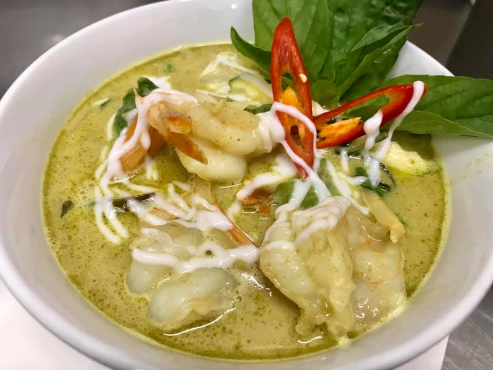 Nr 7 Grønn Curry i kokkos saus med grønnsaker. med ris (medium sterk)