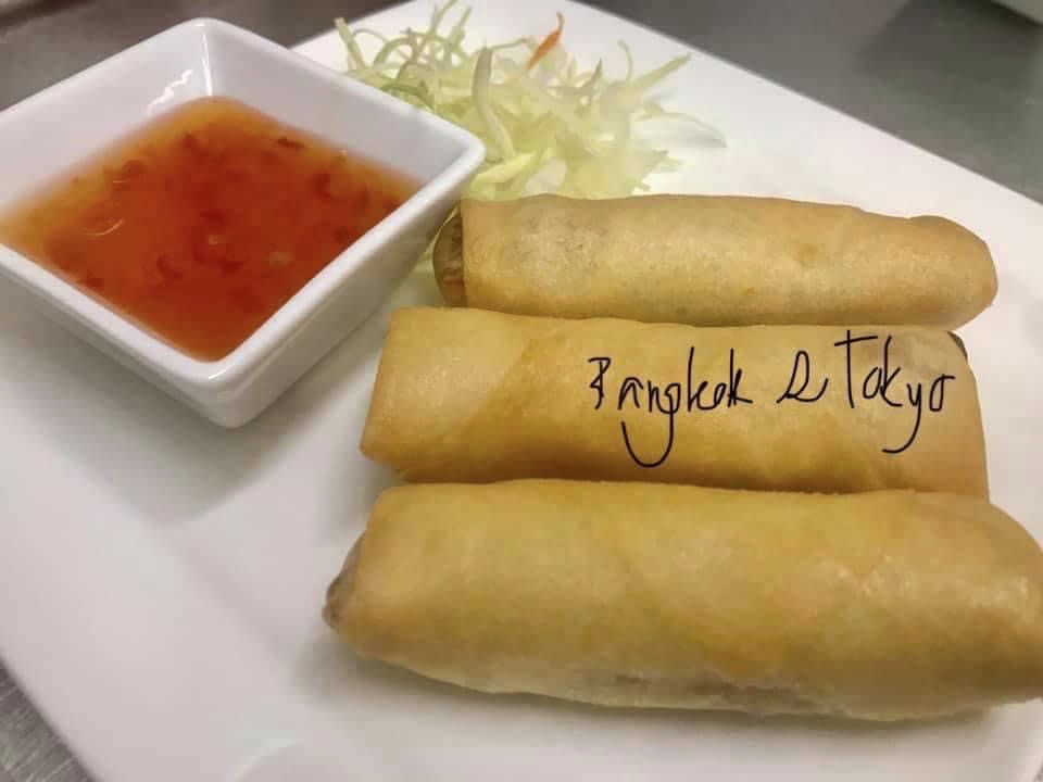 1. A. Vårruller hjemmelagde (bl,h,m,so) kylling. Servert med sursøt saus. Kr 105,- 3 stk. inne. 115,.kr